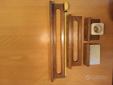 incluso anche un set di accessori coordinati in legno composto da 2 porta asciugamani, porta sapone e porta spazzolini