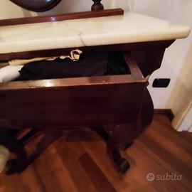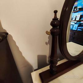 Specchiera da camera da letto in legno mogano con piano in marmo