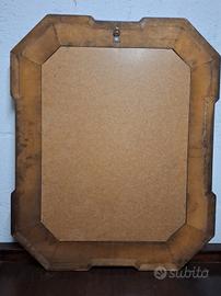 Antica specchiera in radica di noce dalla linea geometrica. Misure 67x82 cm