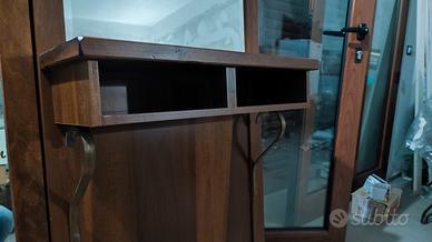Stupenda specchiera per ingresso con mensole. Completamente in legno massello. Da notare la composizione degli specchi. Unica. 2 elementi da 70x210 cm, profondità con mensola max 28 cm.
