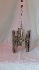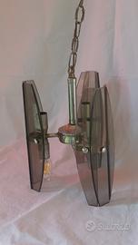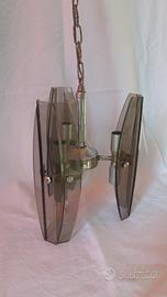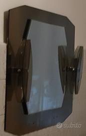 Specchiera con applique + lampadario x arredo bagno anni 70 in vetro fumè Dim. specchio 80x60cm