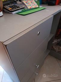 1 cassa reception angolare misura 110x120 con 4 cassetti e vani portaoggetti aperti molto comodi.