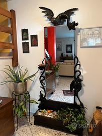 Vendesi rara specchiera con fioriera originale anni ’30, stile Liberty/Goticista di epoca d’annunziana. Pezzo d'epoca di eccezionale impatto scenico.