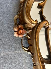 Specchiera con cornice in legno intagliato laccato e decorato.