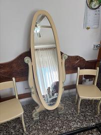 Specchiera ovale con appoggio a terra lavorato e laccato a mano. Astenersi perditempo, prezzo non trattabile.
