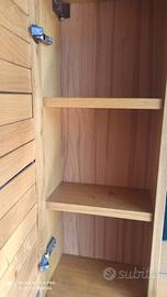 vendo specchiera per bagno in rovere di massello con specchio e luce con due scomparti interruttore è presa altezza 70cm larghezza 120cm profondità 30cm in perfette condizioni