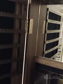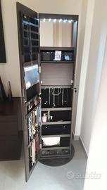 Specchiera portagioie a figura intera girevole con luci led rovere scuro, nuova mai usata presenta un difetto all'interno come si evidenzia dalle foto
