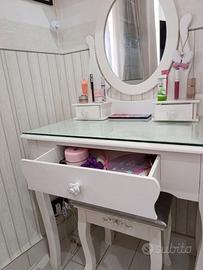 Come nuova ,specchiera trucco, in più set luci applicabili intorno e regolabili, pomelli prettamente in porcellana e con vetro antigraffio 6mm sulla base ,con sgabello...prezzo poco trattabile.