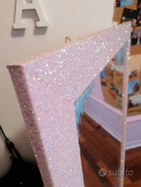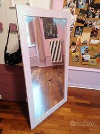 Specchiera rettangolare glitter rosa cm. 73 x 3 x 133 (larghezza, profondità, altezza)