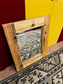 Specchiera rustica fatta a mano con legni di recupero. Spazzolata e trattata con innesto a 90° Misure cornice 67 x 82