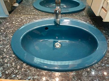 struttura in legno e specchi con mensole e cassettini. 2 lavandini incassati in base granito blu, bidè.possibilita di acquistare singoli pezzi .il palazzo e' dotato di ascensore