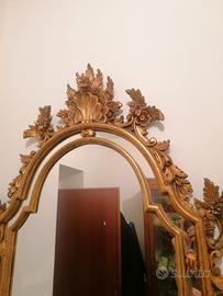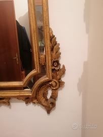 Specchiera in legno color oro anni 70 lavorazione in rilievo stile barocco