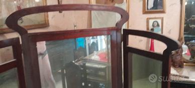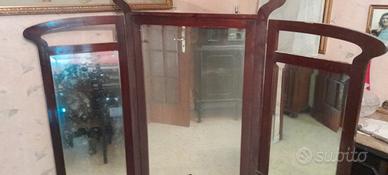 specchiera vintage. anni 40. due metri. x due metri. con pezzo centrale fisso. due laterali movibili. e base sotto portante da 2 metri