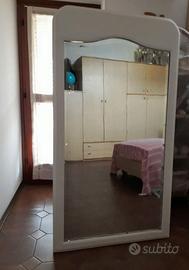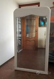 Specchiera vintage in legno massello laccato bianco. Dimensioni: altezza cm. 134 - larghezza cm. 74 Non disponibile a spedizione, consegna in loco.