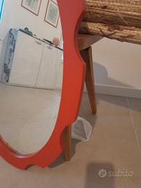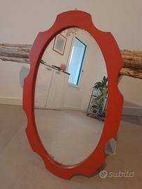 Specchiera anni '60 con cornice in legno rossa. In ottimo stato, con normali segni del tempo.