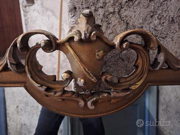 Specchiera larghezza massima 240 cm, altezza massima 110 cm, in legno intagliato tinto oro, originale fine anni '50, inizio anni '60. Da ritirare a Roma in zona Cinecittà.