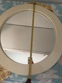 Specchio a cerchio in ottime condizioni di color bianco panna