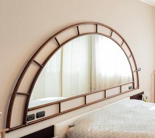 Specchio Bambù Design in stile etnico tenuto in perfette condizioni con lavorazioni e bordi in legno ideale come testata di un letto o per arredare qualsiasi ambiente. Lunghezza 290 cm h 150 nel punto più alto. Da ritirare a Segrate, no spedizione. Valore di acquisto 900 euro + trasporto