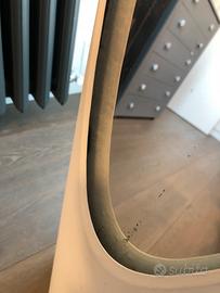 Specchio a unghia di Design Bonetto, originale anni 70. Dimensioni 25 cm di diametro, altezza 165 cm, colore bianco. Presenti segni del tempo (foto 4 e 5). Ritiro a Milano