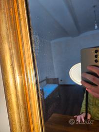 Bellissimo specchio antico con cornice in legno dorato a foglia d'oro e specchio al mercurio Lunghezza 100