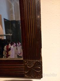 Vendo specchio molato anni 40 con cornice originale in gesso dipinto con smalto di colore mogano scuro ornata nei quattro angoli da un disegno in rilievo tipico dell epoca.Si può appendere nelle due versioni,sia orizzontale che verticale .