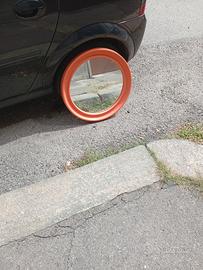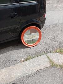 specchio anni 50 arancione rotondo in ottimo stato da bagno