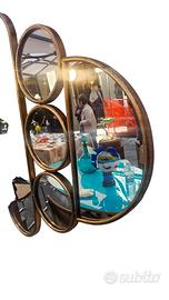 Bella specchiera anni settanta a cerchi e ovali, tutti inferro dorato. Misura larghezza centocinque altezza ottanta