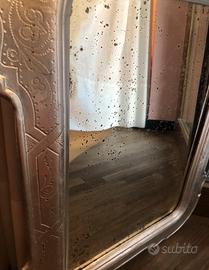 Specchiera a vassoio chiamata anche Cabaret o Garibaldina, realizzata in legno e decorata a foglia argento. L'interna superficie è arricchita da decorazioni punzonate e bulinate. Condizioni molto buone: la foglia argento è originale e pulita da restauratrice professionale con laboratorio autorizzato dalle belle arti, degno di nota e’ lo specchio originale dell’epoca.