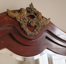 Bellissimo specchio molato di grandi dimensioni, in legno di mogano con fregio in bronzo di fine Ottocento. Visionabile e da ritirare a Bologna zona pedecollinare.