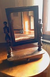 specchio antico da appoggio in legno con piccolo cassetto sulla base sono a disposizione per informazioni ecc. consegna a mano mezzo vostro