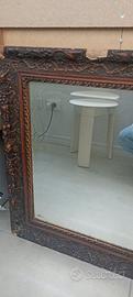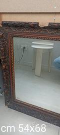 Specchio con cornice in legno da restaurare nella cornice (presenta punti danneggiati) ideale per chi riesce a restaurare e decorare. Dimensioni 67x55 spessore cornice la bordatura della cornice è di cm 9. Ritiro a Ferrara non spedisco, prezzo trattabile
