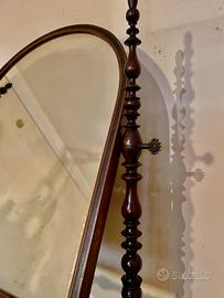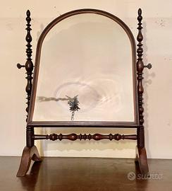 Bellissimo "specchio specchio delle mie brame.. chi è la più bella del reame?!" Tutto in noce con lavorazioni, in splendide condizioni! Mis 60x40 circa Girevole, orientabile, ma stabile.. Posso spedire a vostre spese