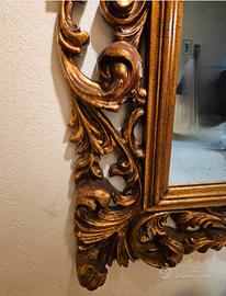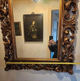 Splendido specchio d’arredo con cornice in legno massello intagliato, in stile barocco/rococò.