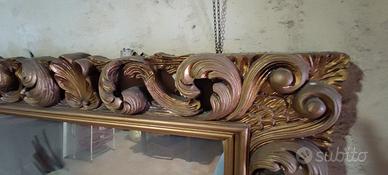 Vendo specchio di almeno cento venti anni dimensioni 220x120 cm circa con cornice il legno intagliato a mano,la cornice e su tre lati.