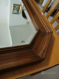 vendo specchio antico circa anni 60. La cornice e lavorata e di legno massello smaltato, lo specchio invece ha il bordo effetto bisello. PREZZO TRATTABILE