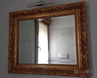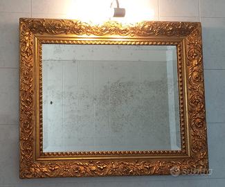 Specchio antico originale color oro restaurato con vetro anticato provvisto anche di luce. Misura 83 × 67 cm