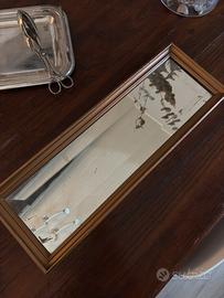 Vendo specchio antico con cornice dorata. Misure 47x18. Effetto “tridimensionale” con qualche segno di usura che lo rende unico. Completo di attacco per appenderlo alla parete.