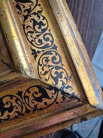 belliissimo pezzo di antiquariato cornice foglia oro con motivo dipinto a mano. 35 x 52.