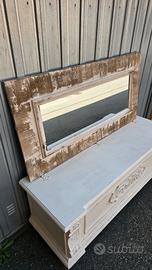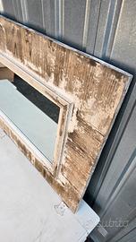 Specchio shabby chic, nuovo e mai usato, con cornice in legno invecchiato per un look rustico ed elegante. Dotato di 4 ganci pratici per stendere vestiti, ideale per arredare con stile un ingresso o una camera da letto. Perfetto per amanti dello stile vintage!