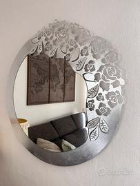 Specchio rotondo come nuovo senza nessun difetto, color argento con rose Misure 1mx1m Marca: Arte e Mestieri Made in Italy