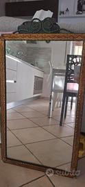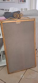 Struttura realizzata a mano da un artigiano negli anni '50 con gradevoli decorazioni che rendono lo specchio abbinabile a diverse tipologie di arredamento. lo specchio ha una leggera patina dovuta dal tempo che lo rende ancora più originale. Dimensioni totali, comprese le decorazioni superiori 83x46cm Dimensioni della superficie dello specchio 70×40cm.