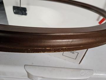 specchio con bordo in legno marrone, già predisposto per appenderlo in ambo i sensi, misure 59x80. piccoli graffi sui lati.