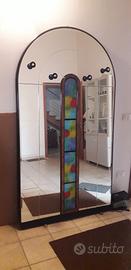specchiera a muro con attaccapanni incorporato. inserti in RADICA e vetro colorato come nuovo