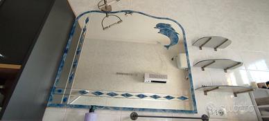 Specchio con lavorazione a sabbia azzurro, in ottime condizioni, per bagno o ambienti svariati, misure massime in foto.