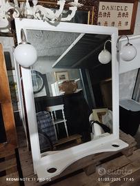 Specchio bagno con 2 applique a palla in vetro e mensola. L 80 x H 100