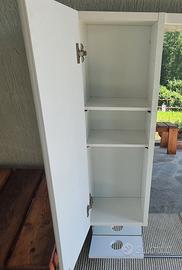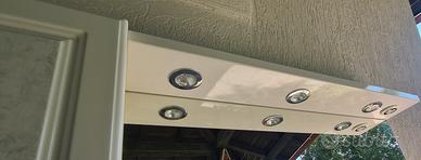 Vendo specchio bagno con mobiletto di colore bianco, mai usato, con faretti. Leggera scalfitura nello specchio nell'angolo basso destro (causato nello spostamento - v. foto). Dimensioni: larghezza 120cm - incluso armadietto; altezza 110 cm; larghezza arnadietto 25 cm, profondità armadietto 20 cm. Non spedisco.