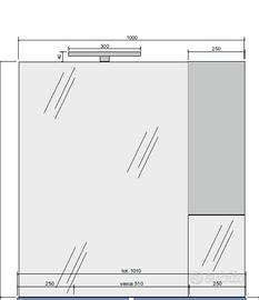 vendo specchio bagno con mobiletto comr in foto ancora imballato causa non utilizzo. Vetro float con argentatura, spessore 4 mm modello vittoria mondo convenienza