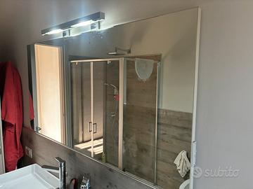 Bellissimo specchio per bagno, in ottimo stato, con doppia lampada a led , doppio interruttore e doppia presa. Ottimo con 2 lavandini. Misure 72 per 144 cm circa. Lampade a led incluse. Cedo causa trasferimento.