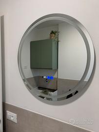 Prezzo: 70 € cad. 130 € se acquistati insieme (2 pezzi) Vendo 2 specchi da bagno rotondi con luce LED e funzione antiappannamento, usati pochissimo e in condizioni pari al nuovo. Vendibili anche separatamente. Perfetti per bagno doppio lavabo o per chi vuole un ambiente moderno e funzionale. Li vendo solo per cambio arredamento. Funzionano perfettamente: luce regolabile e sistema antiappannamento molto comodo, soprattutto dopo la doccia. Design moderno effetto bagno hotel/spa, illuminano molto bene senza dare fastidio agli occhi. Caratteristiche: •Diametro 60 cm •Illuminazione LED integrata •Luce regolabile: calda / naturale / fredda •Funzione antiappannamento •Accensione touch •Luminosità 800 lm •Potenza 20W (antiappannamento 10W) •Protezione IP44 (adatto al bagno) •Durata LED circa 40.000 ore Condizioni: Come nuovi. Qualche leggero graffio dietro sull’alluminio dove si appende in quanto era appeso al muro. Specchio perfetto Consegna: •Ritiro a mano preferito •Possibile spedizione Disponibili subito, già pronti.