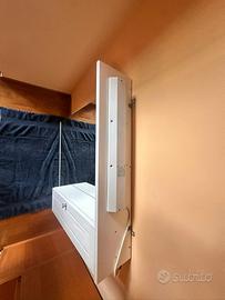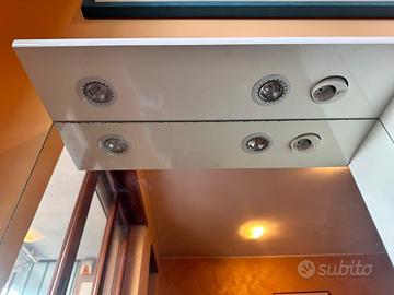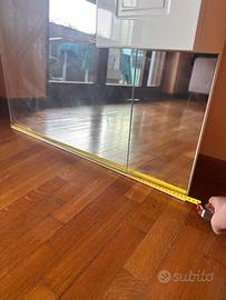 Specchio bagno modernocon Dimensioni: anta 81x104 larghezza anta 18, dotato di luce Il mobiletto ha le Mensole in vetro Nella congiuzione degli specchi risulta un po fastagliato cosi fra specchio e base faretti Ritiro al domicilio del venditore